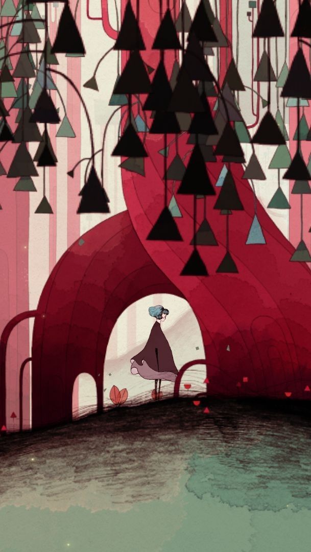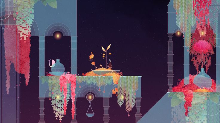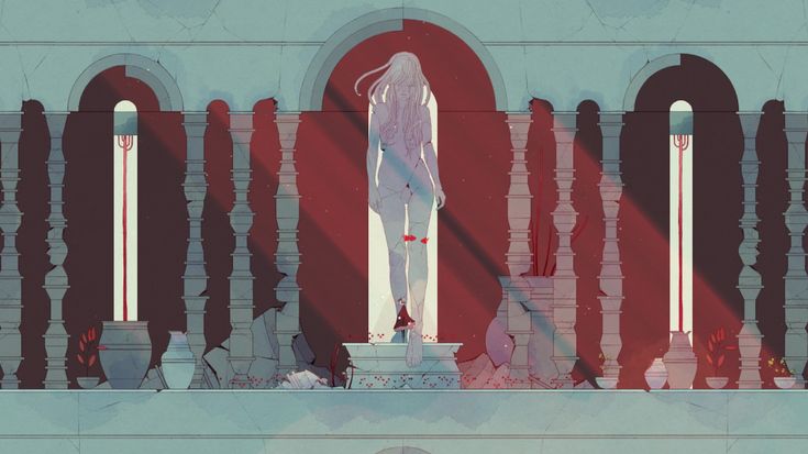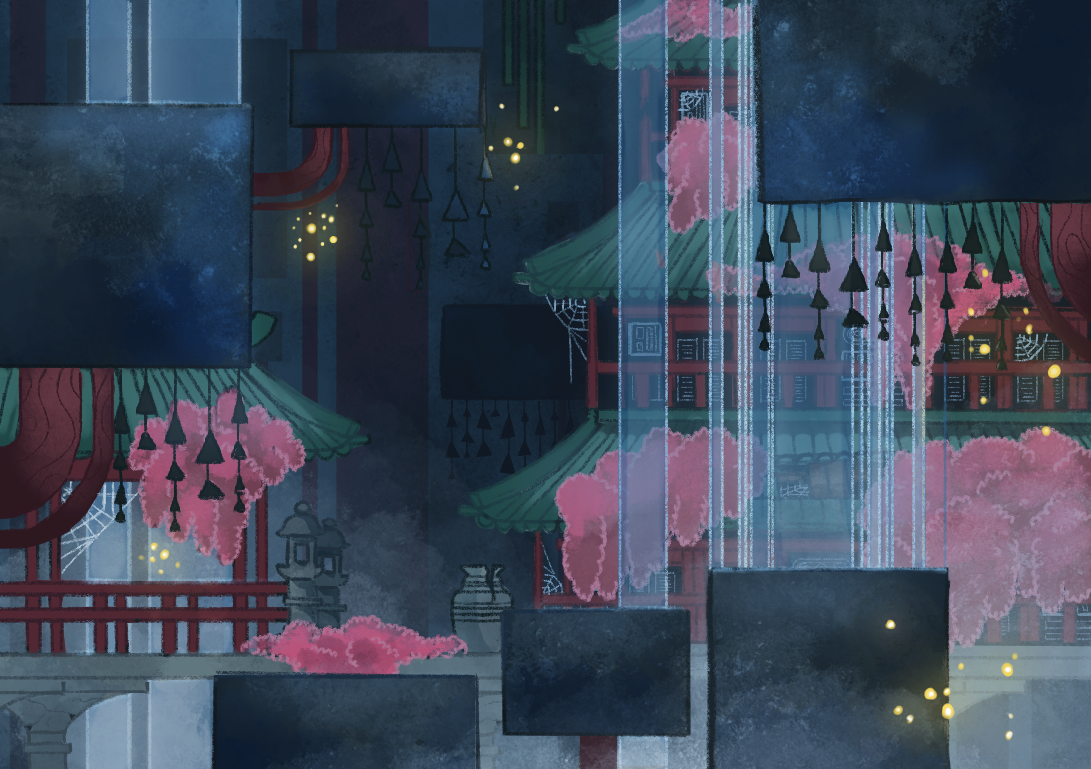 Création d’une illustration en reprenant le style graphique du jeu vidéo “Gris” du studio Nomada avec pour thème “temples japonais abandonnés recouverts de mousses vivantes”.