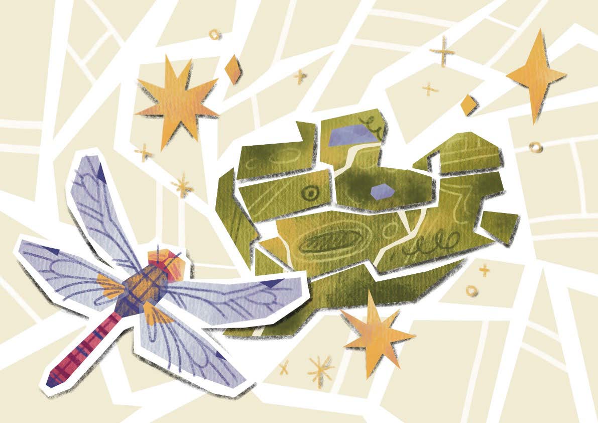 Dans un décor naturel, on voit plusieurs insectes qui se posent un par un sur les différentes parties du meuble.
